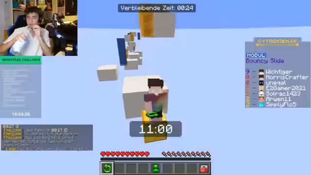 01:02:55Der Streamer startet die Win-Streak Challenge in Minecraft und versucht, verschiedene Spielmodi hintereinander zu gewinnen. Er ist motiviert und erklärt, dass er möchte, dass die Zuschauer etwas auf ihr Auge haben. Während des Gameplays zeigt er Frustration über einige Modi, besonders über das Turm-Roulette, bei dem er das Gefühl hat, unfair behandelt zu werden. Er erwähnt auch seine Probleme mit dem BadLine-Partnerprogramm.
