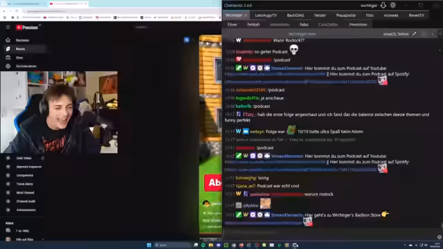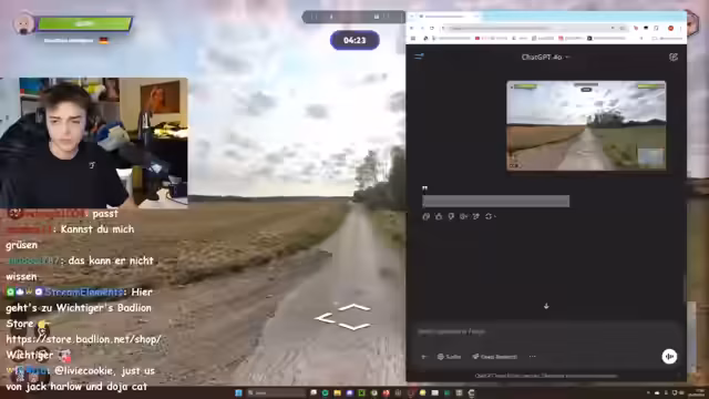 00:14:40Die Podcast-Folgen erscheinen jeden Montag um 18 Uhr. Der Streamer bittet den Chat um lustige Intro-Ideen für den Podcast, die in der dritten Folge umgesetzt werden sollen. Er äußert Bedenken wegen Bauchschmerzen nach dem Verzehr von Lachs und vermutet, dass zu viel Olivenöl die Ursache sein könnte. Es wird überlegt, die Winstreak Challenge als aufwendig produziertes Video auf dem Mainkanal zu veröffentlichen. Der Streamer reagiert auf Kommentare im Chat, unter anderem zu seinem Profilbild und der Frage, ob er an einem Dating-Format teilnehmen würde, was er jedoch verneint. Er kündigt an, dass der Twitch-Chat in GeoGuessr gegen ChatGPT antreten wird und erklärt das Konzept des Duells, bei dem sowohl der Chat als auch ChatGPT eine Minute Zeit haben, um einen Ort zu bestimmen. Der Streamer hat bereits Vorbereitungen getroffen, um ChatGPT die Aufgabe zu stellen, den genauen Ort anhand eines Screenshots zu identifizieren.