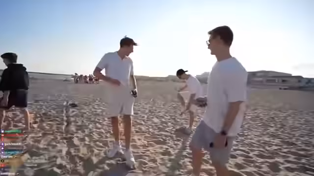 01:41:21Am Strand angekommen, erleben die Streamer verschiedene Aktivitäten wie Volleyball, jedoch mit unterschiedlichem Erfolg. Es kommt zu Interaktionen mit Einheimischen und anderen Touristen. Die Gruppe stellt fest, dass es sich um einen FKK-Strand handelt, was für unvorhergesehene Reaktionen sorgt. Sie suchen nach Unterhaltungsmöglichkeiten und beschreiben die beeindruckende Kulisse am Meer, mit einer Mischung aus Bewunderung und leichter Enttäuschung über das Angebot.