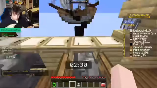 03:02:09Der Streamer wechselt zum Jump League Modus, einen seiner Lieblings Modi. Er zeigt gute Kenntnisse der Parkour Maps und meistert mehrere anspruchsvolle Module mit Übersicht und Präzision. Trotz anfänglicher Unsicherheit in einigen neuen Modulen gelingt es ihm, einen komfortablen Vorsprung aufzubauen. Mit viel Konzentration und einem Glücks beim Finden wichtiger Items gewinnt er auch diesen Modus.