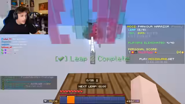 01:16:43Das PvP-Szenario wird verlassen, um sich einem Parcourssurvival-Modus auf einem privaten Minecraft-Server zuzuwenden. Die IP-Adresse wird im Chat geteilt, um allen Zuschauern die Teilnahme an einer XXL-Runde zu ermöglichen. Nach technischen Schwierigkeiten mit der Modusauswahl startet schließlich erfolgreich eine Runde Paku Warrior. Der Streamer zeigt sich hochmotiviert und ist erfreut über die schnelle Teilnahme der Community.