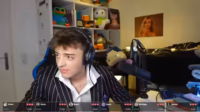 01:17:35Es wird die Vorbereitung für ein Quiz besprochen, inklusive der Einrichtung eines Links für die Teilnehmer und der Integration einer Browser-Quelle in OBS, um die Herzen und Votes der Zuschauer anzuzeigen. Der Streamer äußert seine Begeisterung darüber und fragt nach weiteren "dummen" Kleidungsstücken. Es wird über das Outfit des Streamers diskutiert, das mit dem eines Landverkäufers verglichen wird, woraufhin er sich umziehen will. Es wird kurz auf ein früheres Problem mit der Mütze eingegangen und der Streamer wechselt diese. Es folgt ein Gespräch über das Aussehen und den Kleidungsstil des Streamers Kroko, wobei Anspielungen auf frühere Outfits und Anlässe gemacht werden, einschließlich eines Thailand-Sex-Urlaubs und eines Drogenkonsums in Nepal. Mike wird aufgefordert, sich einen Sakko zu holen, um den Dresscode zu erfüllen.