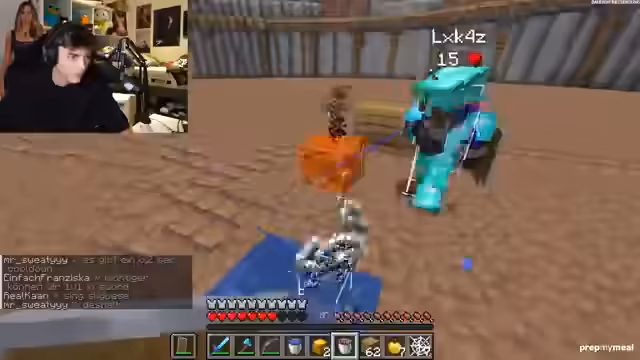 02:41:17Nach einem überraschenden Tod im Gefängnis eines rivalisierenden Königreichs muss der Streamer sich befreien. Er ist bei seinem Feind gespawnt und muss mit einem Timer auf seine items achten. Nachdem er entkommen ist, plant er für die Zukunft mit einem Team, ein Bett zu platzieren, um einen besseren Respawn-Punkt zu haben und so solchen Situationen vorzubeugen.