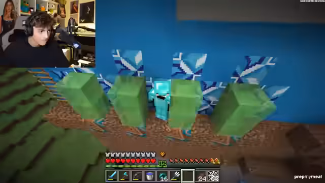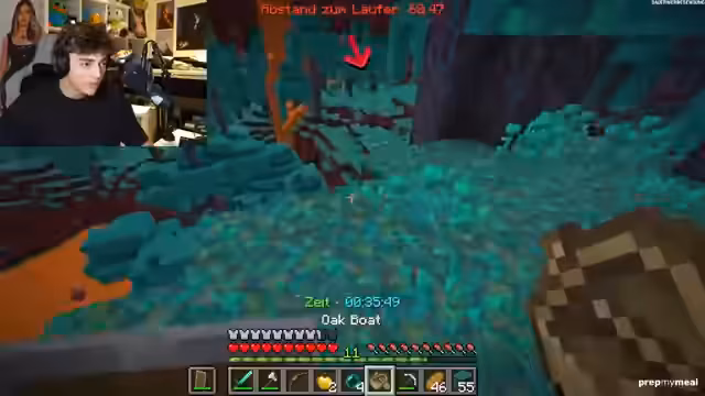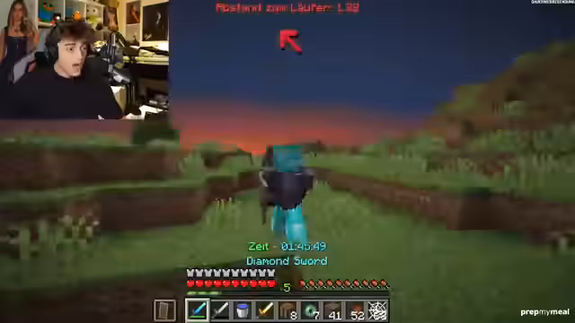 00:43:08Nachdem sie den Druck der im Overworld jagenden Hunters durch das Ozean-Schwimmen etwas lindern konnten, finden die Runner eine tiefe Lush Cave und einen riesigen Diamantvorrat. Diese neuen Ressourcen ermöglichen es, Full Diamond-Rüstung und effektive Waffen zu craften. Die Strategie wechselt nun in den Nether, um dort Endermen zu farmen und weitere Endgame-Items wie Enderperlen zu sammeln. Dies ist ein notwendiger, aber riskanter Schritt, da sich die Gefahr im Nether und die verbleibenden Hunter叠加 (叠加)叠加.