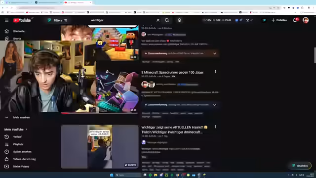 00:36:02Nach der Quizshow kündigt der Streamer sein Hauptevent für 21 Uhr an: einen Minecraft-Speedrun mit 100 Jägern. Er fordert die Zuschauer auf, Minecraft bereit zu machen und um 21 Uhr dabei zu sein. Kurz vor dem Event hat er technische Probleme mit der virtuellen Kamera in OBS, die er jedoch behebt. Die Quizshow verläuft teilweise turbulent, mit falschen Antworten und knappen zeitlichen Limits.