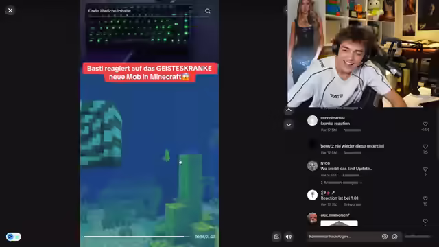 00:52:50Der Streamer teilt seine Begeisterung für Musik und hebt hervor, wie ein bestimmter Song mit dem gleichen Sound endet, mit dem das Album beginnt. Er lobt den Musikgeschmack und gesteht, dass seine eigene 'on repeat'-Liste peinlich sei. Er spricht seine Wertschätzung für die Künstler Michael und Yassim aus, die er als Hoffnung der deutschen Musik sieht, und hofft auf ihren Durchbruch in diesem Jahr. Er beschreibt Yassins aktuelle Street als 'crazy' und seine letzten drei Singles als Wahnsinn. Er geht auch auf die Frage eines Zuschauers ein, ob er privat Chewbac höre, was er verneint und stattdessen seine Vorliebe für Hip-Hop und Rap erwähnt. Er betont die Bedeutung von Musik und fordert die Zuschauer heraus, etwas zu nennen, das besser sei als Musik. Er bittet um kurze Pause, um sich die Nase zu putzen, entschuldigt sich dafür und erklärt, dass er erst ein wenig reden möchte, bevor er mit Minecraft beginnt, obwohl es im Titel steht.