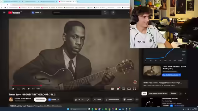 00:35:10Es beginnt eine Diskussion über Musik, angefangen mit neu interpretierten Songs und der Frage, warum es früher keinen Rap gab. Es werden verschiedene Songs und Künstler ausprobiert und bewertet. Es wird die Rave-Künstlerin Jacketti Rail gelobt und sich über ihren Erfolg gefreut. Der Streamer glaubt, dass sie die nächsten Jahre der Musikindustrie prägen wird und vergleicht sie mit Amy Winehouse und Adele. Es werden Glückwünsche an Prime zum Geburtstag ausgesprochen und über das eigene Geburtstagsverhalten reflektiert. Der Streamer hört gerne Live-Performances und würde am liebsten ein Song-Battle mit den besten Live-Performances machen. Es wird darüber diskutiert, warum Musik von Künstlern oft erst nach deren Tod Anerkennung findet und was wäre, wenn verstorbene Künstler wie X, Lil Peep, Juice WRLD und Mac Miller noch leben würden. Es wird die goldene Zeit der Soundcloud-Ära vermisst und gefragt, ob es so etwas noch einmal geben wird. Sabrina Carpenter wird als Künstlerin gelobt, die ihre Sache ernst nimmt. Es wird nach Underground-Künstlern gefragt, die zu wenig Aufmerksamkeit bekommen, und 21 Pilots als Beispiel genannt, die trotz ihres Erfolgs ein krasses Album gemacht haben und eine zehnjährige Geschichte zu Ende gebracht haben.