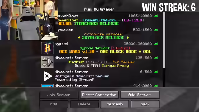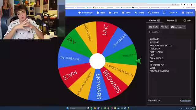 01:08:26Der Streamer äußert seine Begeisterung für Minecraft und fragt die Zuschauer nach ihrem Interesse an Minecraft-Spielmodi wie Badwars oder Skywars mit Challenges und Kollegen. Er schlägt vor, etwas Neues/Altes auszuprobieren und mit einem Kollegen eine dumme Challenge zu machen. Er bittet die Zuschauer, ihre Meinung in den Kommentaren zu hinterlassen. Er gewinnt Timejump und erhält ein Diaschwert und Essen. Er fragt, ob das Licht heller gemacht werden soll. Er ist begeistert von seinem Spiel und braucht Heilung. Es wird versucht, die Gegner zu besiegen und den Weg abzuschneiden. Er erklärt, dass sie so lange Minecraft spielen, bis sie eine Runde verlieren. Er gewinnt gegen Metri und geht nochmal rein. Nach dem Gewinn der ersten Runde wird das Rad erneut gedreht, um den nächsten Spielmodus zu bestimmen: UHC One vs. One.