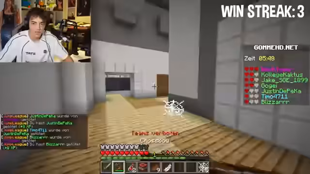 00:55:14Nach einer längeren Unterhaltungsrunde, die auch Gesundheitsthemen und Musikdiskussionen umfasste, beginnt die eigentliche PVP Challenge. Der Streamer stellt das Konzept vor: Ein Glücksrad wird gedreht, um einen zufälligen Minecraft-Modus auszuwählen. Das Ziel ist, so viele Runden wie möglich hintereinander zu gewinnen. Der Start erfolgt mit dem Modus 'Timejump', den der Streamer als Herausforderung beschreibt.