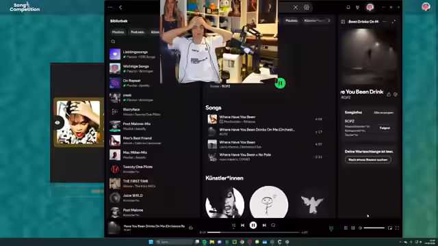 01:55:42Aufgrund mangelnder Motivation für das aktuelle Spiel schlägt der Streamer ein Song-Battle vor, betont aber, dass die Qualität des Battles von den Songwünschen der Zuschauer abhängt. Er erklärt den Zuschauern, wie sie ihre Lieblingssongs von Spotify teilen können, indem sie den Link zum Song kopieren und in den Twitch-Chat einfügen. Er weist darauf hin, dass nur Spotify-Songs erlaubt sind und gibt eine detaillierte Anleitung, wie man den Link findet und einreicht. Während die Zuschauer ihre Songs einreichen, teilt er seine aktuellen Lieblingssongs und ermutigt die Zuschauer, sich anzumelden, falls es Probleme beim Einreichen gibt. Er erklärt den Ablauf des Song Battles und die Notwendigkeit, sich bei Spotify anzumelden, um die Songs in voller Länge hören zu können.