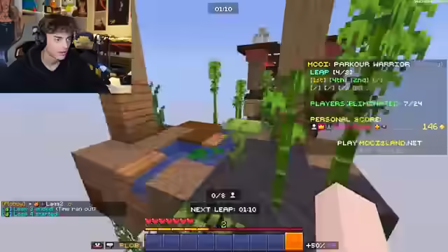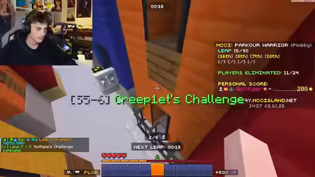 01:09:03Der Streamer erklärt die Regeln des Spiels, bei dem es darum geht, Parkour zu machen und zu gewinnen, wobei man Herzen verliert, wenn man herunterfällt. Er fragt, ob sie sich eigentlich in Minecraft befinden, da er sich unsicher ist, ob sie im richtigen Modus sind. Es stellt sich heraus, dass sie seit einer halben Stunde in der falschen Kategorie (Just Chatting) sind, was zu großer Frustration führt. Der Streamer entschuldigt sich und fragt, ob die Runde gleich vorbei ist, weil er etwas falsch eingestellt hat. Er gibt zu, dass er es mit den Einstellungen übertrieben hat und hofft auf Verzeihung. Die Musik wird als stressig empfunden. Luca ist der letzte Überlebende, aber auch er scheitert schließlich. Der Streamer verspricht, die nächste Runde einfacher zu gestalten.