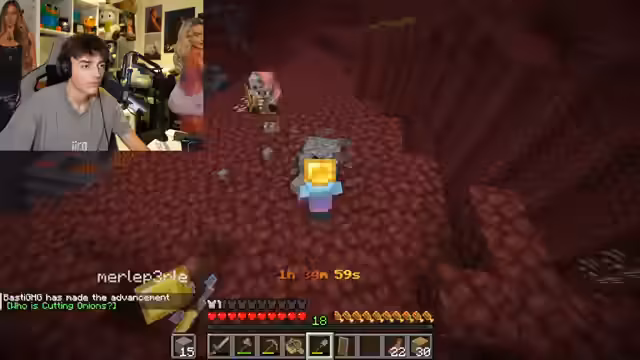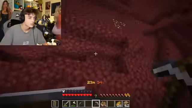 01:16:32Das Team betritt gemeinsam eine Festung im Nether. Die Gefahren durch Blazes, Endermen und Gase werden diskutiert, und jeder wird angewiesen, auf seine Nachbarn aufzupassen. Ein Skeletten-Spawner wird entdeckt, und das Team muss zurückweichen, um nicht Schaden zu nehmen. Nachdem sie sich mit Werkzeugen und Essen versorgt haben, wollen sie die Erkundung der Festung fortsetzen, während sie versuchen, Schäden zu vermeiden und aufeinander aufzupassen.