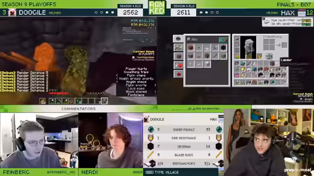 02:30:20Nach dem Sieg von Lukas und der Übergabe der Preise startet der Streamer ein neues Segment mit dem Titel 'Weltmeisterschaft'. Der Fokus verschiebt sich nun von der Show der Runde hin zu einem 'Speedrun'. Es handelt sich um ein hochkarätiges Tournament der besten 16 Minecraft-Speedrunner, bei dem Dougal, ein Ex-Weltrekordhalter, gegen Hex, den Titelverteidiger, im Finale antritt. Der Streamer analysiert das Spiel live und kommentiert die überaus präzisen Mechaniken der beiden Kontrahenten.