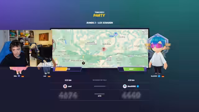 03:00:34Nachdem mehrere Achievements nicht funktionieren, vermuten die Teilnehmer, dass es an der Minecraft-Version 1.21.4 liegt. Sie entscheiden sich, ein GeoGuessr-Spiel als Überbrückung zu spielen, während auf einen möglichen Hotfix gewartet wird. Das Spielformat ist ein 2 gegen 2 oder 1 gegen 3 GeoGuessr Battle, wobei die Spieler versuchen, Orte anhand von Bildern zu erraten. Die Teilnehmer sind motiviert und zeigen Begeisterung für das Spiel, insbesondere für den "No-Move"-Modus, in dem sie sich nicht bewegen dürfen.