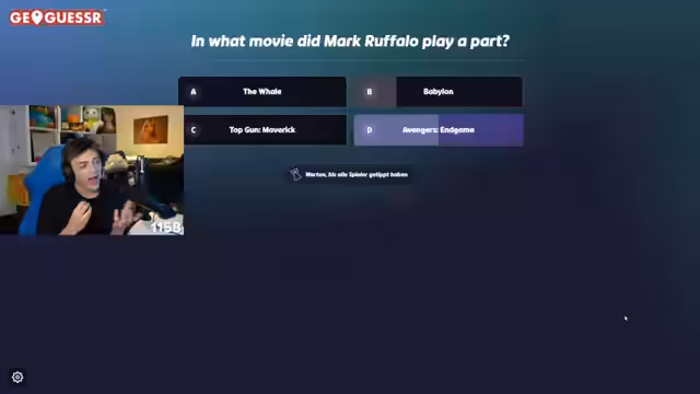 04:35:53Die Teilnehmer spielen ein schnelles GeoGuessr-Spiel, bei dem sie innerhalb von 10 Sekunden den Standort bestimmen müssen. Die Runden sind intensiv und erfordern schnelles Denken und gute Geographicakenntnisse. Die Stimmung bleibt dabei entspannt und unterhaltsam, mit häufigen Kommentaren zur Leistung einzelner Spieler und allgemeinen Diskussionen über verschiedene Länder und deren Besonderheiten.