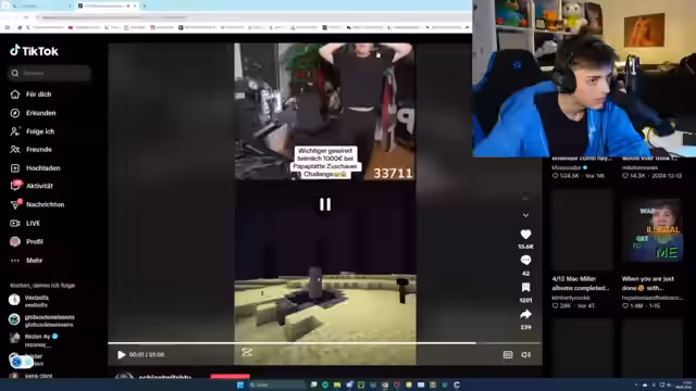 00:04:33Es gibt ein Problem mit dem Autofokus der Kamera, der durch die Sabrina Carpenter Karten im Hintergrund beeinflusst wird. Wenn das Gesicht nicht im Fokus ist, werden die Karten scharf gestellt, was ablenkend wirkt. Es wird überlegt, ob man einfach ohne das abnehmbare Element streamen soll. Es wird kurz überlegt, ob man die Powerplatte pranken soll. Es wird ein TikTok erwähnt, das letzte Woche Sonntag aufgenommen wurde, bei dem der Streamer sich mit dem Cutter von Kevin von Plattlatt getroffen hat, um einen Prank zu organisieren. Es wird ein Video gezeigt, in dem der Streamer nervös ist und sein Pulsgerät hätte einblenden müssen. Kevin hat eine Gameshow in Minecraft veranstaltet, bei der Zuschauer in verschiedenen Modi gegeneinander antreten konnten, um Geld zu gewinnen. Der Streamer war nicht als Zuschauer eingeladen, sondern hat sich verkleidet und seine Stimme verzerrt, um an der Show teilzunehmen.