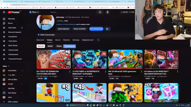 05:41:40Der Stream beginnt mit einem geplanten Duell zwischen den Streamern. Es geht darum, wer als Erster einen schwierigen Parkour mit verschiedenen Hindernissen wie Slimeblöcken, Leitersprüngen und anderen technischen Herausforderungen meistert. Beide Streamer sind angespannt und versuchen, die Erfolgschancen einzuschätzen, wobei sie sich gegenseitig provozieren und motivieren.