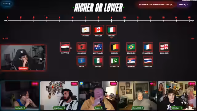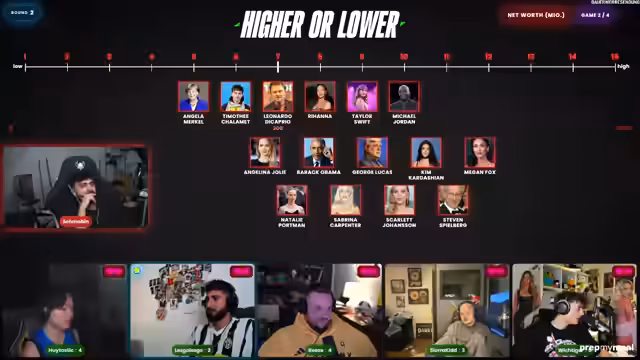 01:25:03Nach Abschluss des Hauptquizzes wechselte der Streamer zu einem neuen Spiel namens 'Higher or Lower'. Der Start erfolgte mit der Kategorie monatliche Spotify-Hörer, wobei den Teilnehmern Künstler wie Eminem und Bad Bunny als Referenzpunkte dienten. Das Spiel erforderte das Einsortieren weiterer Künstler in eine Rangliste, was zu zahlreichen Fehlern und spannenden Momenten führte. Eine zweite Kategorie, das Net Worth von Prominenten, folgte ebenfalls in diesem Format und brachte weitere Verwirrung über die genauen Vermögenswerte.