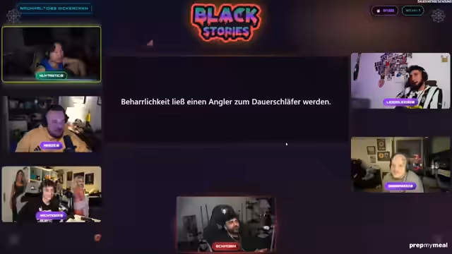 02:19:02Nach den Quizrunden wechselt der Streamer das Spiel und geht zu Minecraft über. Er startet ein 'Black Stories'-Format, bei dem den Teilnehmern eine kurze Geschichte mit einem Rätselcharakter präsentiert wird. Die erste Geschichte lautet 'Nachhaltiges Nickerchen: Beharrlichkeit ließ ein Angler zum Dauerschläfer werden'. Die Teilnehmer müssen durch gezielte Ja/Nein-Fragen die Auflösung der Geschichte finden, wobei der Streamer als Spielleiter agiert und auf die Fragen antwortet.