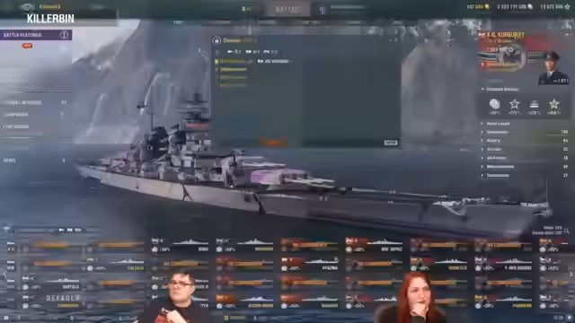 01:45:34Nach der langen kulinarischen Unterhaltung kehrt das Gespräch zum Gameplay zurück. Es geht um die Herausforderungen beim Spielen bestimmter Schiffe wie der Valparaiso, die Konzentration erfordern. Streamer erwähnt Erfolge und Schwierigkeiten im aktuellen Spiel. Das Gespräch umfasst auch eine Diskussion über Spielerränge wie "Arsonist", "Fireproof" und "Witherer", welche Schiffe am besten dafür geeignet sind, und die Verfügbarkeit bestimmter historischer Schiffe im Spiel, wie die USS Laffey.