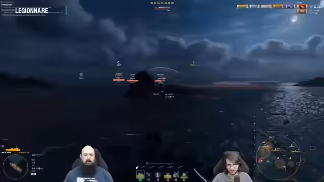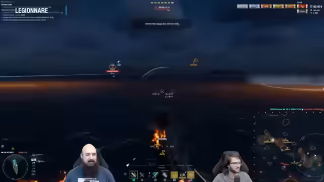 00:32:05Während des Spiels offenbaren sich mehrere taktische Schwierigkeiten. Der Streamer führt den Feuertod und die Torpedos der Zerstörer als seine häufigste Todesursache an. Eine Hauptaufgabe, ein Schiff durch Feuer zu zerstören, wird durch die Wahl von SAP-Geschossen der San Diego unmöglich gemacht. Es kommt zu einem kritischen Fehler bei der Jagd auf die Musashi, die als Hauptziel dient, weil das Team zu nahe an sie heranfuhr und die Mission dadurch gefährdete.