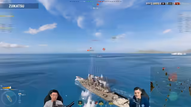 01:14:26Der Fokus liegt auf aggressiver Torpedo-Taktik. Streamer nutzen ihre Schiffe, um Gegner mit gezielten Torpedo-Salven anzugreifen und häufig mehrere Schiffe gleichzeitig zu bedrohen. Es werden taktische Entscheidungen getroffen, wie zum Beispiel das Setzen von Bränden, der Einsatz von Rauchvorhängen und die Jagd auf spezielle Ziele, um Schaden zu maximieren und die Schlacht zu kontrollieren.