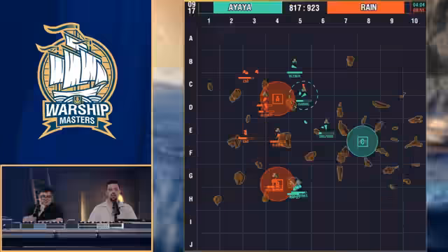 03:57:10In der finalen Phase machen mehrere kritische Fehler von Rain den Unterschied. Der Z-52 wird vom Radar der Ayaya erfasst und leidet unter massivem Schaden. Gleichzeitig scheitert ein offensiver Zug der Kleber, was Ayaya ermöglicht, die Kontrolle über die Karte zu übernehmen. Trotz eines verzweifelten letzten Versuchs mit der République und den verbleibenden Zerstörern, kann Rain den Punktverlust nicht verhindern und scheidet überraschend aus dem Turnier aus.