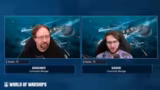 00:36:48Ein neuer, temporärer Spielmodus namens 'Unbreakable Line' wurde vorgestellt. Dieser Modus ist nur für Schiffe der Stufen VI und IX verfügbar und zeichnet sich durch ein revolutionierendes Respawn-System aus. Gesenkte Schiffe können nach einer kurzen Zeit wieder im Kampf erscheinen, wodurch die Schlacht nie endet, bis die Punkte erreicht sind. Schlachtfelder sind kleiner, Matches dauern maximal 15 Minuten und das Ziehen der Schlachtzonen ist entscheidend, da es Punkte gibt, aber keine Punkte abgezogen werden, wenn ein Schiff untergeht. Einzelnachladen von Torpedoes und Verbrauchsgüter stellen taktische Herausforderungen dar.