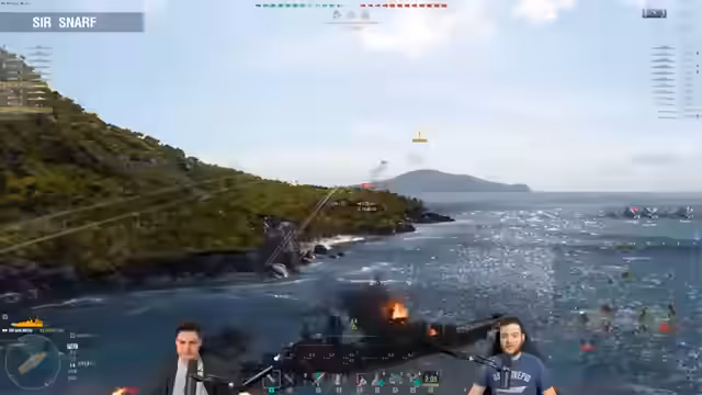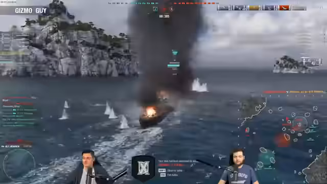 00:12:34Während eines Spiels auf einer Mittelmeer-Karte analysiert Gizmo seine Taktik gegen einen Valparaiso. Er diskutiert die Schwierigkeiten, einen Gegner in Sekundärbereich zu bekämpfen, und die Effektivität seiner Schiffsbewegungen und seiner Waffenauswahl. Der Chat interagiert dabei über den Spielverlauf und Schadensmeldungen.