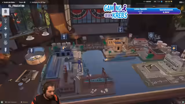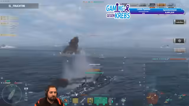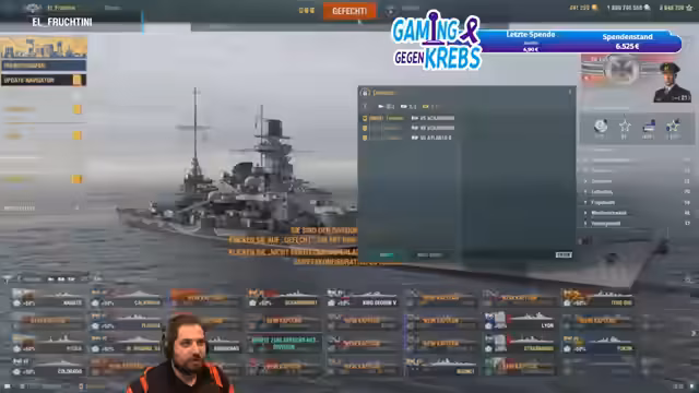 00:06:32Der Livestream beginnt mit El Fruchtini, der die Zuschauer willkommen heißt und die Anwesenheit von Vollen sowie anderen bekannten und neuen Gesichtern des Gaming gegen Krebs-Teams hervorhebt. Das Event steht ganz im Zeichen von Gaming gegen Krebs. Es wird darauf hingewiesen, dass Spenden über gamingengrebs.betterplace.org getätigt werden können, wobei die Zuschauer auf ein Häkchen achten sollen, das eine zusätzliche Spende an Better Place auslösen könnte. Bereits in den ersten fünf Tagen wurden beeindruckende 6.300 Euro gesammelt. Im Laufe des Streams werden verschiedene Giveaways verlost, darunter ein Stufe-7-Container, ein Black Friday 24 Container, ein Premium Black Friday 24 Container, der Kommandant Franz von Hipper, eine deutsche Steam-Kette oder der unsinkbare Sam mit 10 Punkten sowie Flaggen- und Booster-Codes. Um an den Giveaways teilzunehmen, müssen die Zuschauer aktiv im Chat sein und ihre Privatnachrichten auf Twitch offen halten, da Vollen 13 die Codes direkt per Flüsternachricht verteilt. Zusätzlich gibt es einen speziellen Twitch-Drop: einen Aufnäher nach 30 Minuten Zuschauerzeit.
