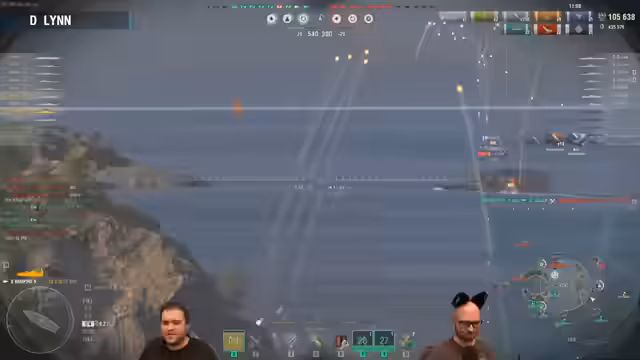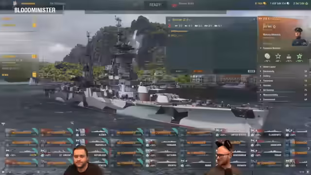 00:10:37Nach anfänglichen technischen Schwierigkeiten und Diskussionen startet der eigentliche Gameplay-Teil des Streams. Zuerst wird in einem XP-Duell auf den Schlachtschiffen Lion und Musashi gespielt. Anschließend folgt ein Kampf auf Tier VI mit dem Schweren Kreuzer Kutuzov. Während des Spiels werden Aspekte der Schiffsbalance angesprochen, darunter die Leistung des Zerstörers Roussillon und die Tatsache, dass Legendäre Verbesserungen nicht zur Ausbalancierung von Schiffen verwendet werden.