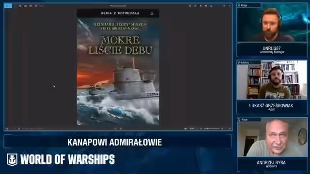 00:00:00Der Stream startet mit einer besonderen Begrüßung und stellt das Thema des Abends vor. Es soll um die größte Aspekte der Wojny Podmorskie gehen. Zu Beginn stellt der Streamer seine Gäste vor: Pan Andrzej Ryba vom Verlag FINA, der für die Veröffentlichung der besprochenen Bücher verantwortlich ist, und Pan Łukasz Grześkowiak, Autor mehrerer Bücher über deutsche U-Boot-Kommandanten wie Günther Prien und Otto Kretschmer. Beide Experten werden für eine Diskussion über die Geschichte der U-Boote im Zweiten Weltkrieg begrüßt.
