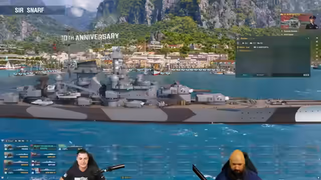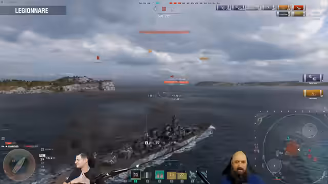 01:46:48Ein Brawl-Turnier im Tier-9-Modus startet. Der Streamer und ein Teamkollege, Legionnaire, besprechen die Schiffsauswahl und die Taktik. Sie entscheiden sich für einen deutschen Kreuzer mit zwei Hydro-Acoustics, um unerkannt zu bleiben, und eine asymmetrische Schlacht wird erklärt. Während des Spiels agiert der Streamer als 'Tank', um Aufmerksamkeit auf sich zu ziehen, während sein Kollege Schaden verursacht. Er coacht aktiv seinen Teamkollege und nutzt verschiedene Fähigkeiten, um das Ziel zu schützen und die feindliche Basis einzunehmen.