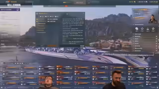02:17:13Der englische Teil des Streams beginnt. Update 14.4 ist nun auf allen Servern live. Es wird der neue Modus 'Perilous Route' mit den neuen Azure Lane Schiffen vorgestellt. Einer der Streamer, Unrog, zeigt einen speziellen Build für die Illinois, der sich in diesem Modus als besonders effektiv erweist. Gleichzeitig wird ein Azure Lane Kearsarge vorbereitet. Chat-Anfragen werden beantwortet und es wird klar, dass Azure Lane Mods im Spiel erlaubt sind, solange sie nur kosmetische Änderungen vornehmen.