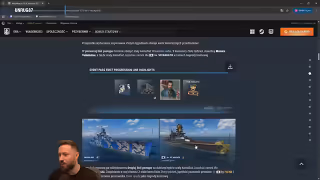00:29:40Im Rahmen des Updates wird ein neues Premium-Schiff vorgestellt: der deutsche Zerstörer ZH1 aus dem 9. Rang. Das Schiff hat einen historischen Bezug zu Polen, da sein ursprünglicher Planer ein polnischer Ingenieur war. Es wird eine ungewöhnliche Bewaffnung mit 120-mm-Geschützen erwähnt und der Weg zur Erlangung des Schiffes durch eine spezielle Werft erläutert.