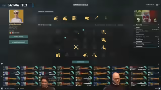 01:30:02Die Schwierigkeiten beim Spielen der experimentellen Schiffe werden angesprochen. Crysantos rät dazu, nicht zu aggressiv zu spielen und den Bonus der Schiffe bestmöglich zu nutzen, anstatt nur reinen Schaden zu verursachen. Es wird erwähnt, dass Missionen in der Werft fair balanciert sein sollen, z.B. eine Aufgabe mit Brand- oder Flutungsschaden. Für den deutschen Kreuzer Nürnberg wird bestätigt, dass er noch verfügbar ist. Die Gefahren von Matchmaking in Divisionen mit Schiffen, die eine Stufe tiefer sind, werden thematisiert.