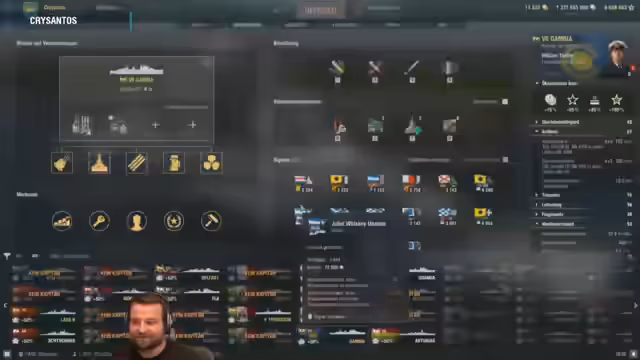 03:14:50Der Stream beginnt mit einer Diskussion über die in Update 14.3 eingeführten Schiffe, insbesondere den deutschen Kreuzer Blücher. Crysantos analysiert dessen Spielweise, betont die starke Sekundärbewaffnung und die mangelnde Flugabwehr. Es wird ein Builds für den Blücher entwickelt, der auf Überlebensfähigkeit fokussiert ist, und die verbesserten Eigenschaften des AP-Geschütts sowie die Nutzung des Geschwindigkeitsboosts als Schlüssel zum Erfolg hervorgehoben. Der Fokus liegt auf einem AP-fokussierten Spielstil zur Schadensfarmung.