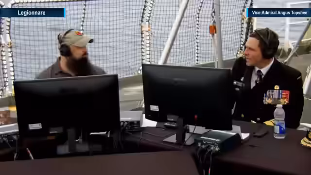 00:28:43Legionnaire, ein Senior Operations Manager von World of Warships, übernimmt die Moderation und begrüßt Vizeadmiral Angus Topsche, den 38. Kommandanten der Royal Canadian Navy. Der Admiral spricht über seine Karriere als Marineoffizier, seinen Befehl über den Zerstörer HMCS Algonquin und seine Freude, die HMCS Haida im Spiel steuern zu können. Er erklärt die zentrale Rolle der kanadischen Marine bei der Sicherung der Seewege und erläutert den Aufbau der Marine von den bescheidenen Anfängen mit nur wenigen Schiffen bis zur großen Flotte im Zweiten Weltkrieg.