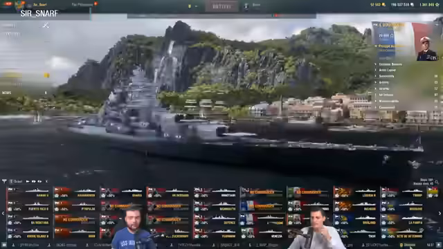 00:54:51Während des weiteren Gameplays werden verschiedene Strategien für unterschiedliche Schiffe erläutert. Der Streamer wählt die Hawaii für den Brawl und erklärt ihre Stärken als schneller Kreuzer mit SAP-Geschützen. Er diskutiert auch die Vorteile des Kolumbos für den Modus, besonders gegen leicht gepanzerte Kreuzer, und betont die Wichtigkeit vonReload-Zeiten und Schadensverteilung. Auch der Umgang mit Inseln als taktisches Hindernis wird thematisiert.