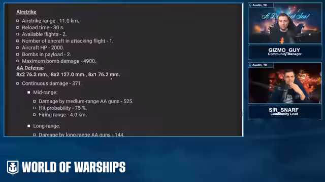00:28:46Der Stream kündigt die Vorstellung mindestens eines neuen Schiffs an. Nach einigen technischen Problemen werden zwei neue Schiffe präsentiert: die USS Fort Worth und der Bouteau. Die USS Fort Worth ist ein US-amerikanischer Kreuzer der Stufe IX mit 254-mm-Geschützen und einer starken Hauptbatterie-Nachladung. Der Bouteau, ein pan-asiatischer Kreuzer der Stufe IX, wird für seine scharfe Langstreckenfeuerkraft und tiefliegende Torpedos gelobt, die durch spezielle Kampfanweisungen schnell wiederaufgeladen werden können.