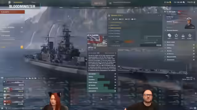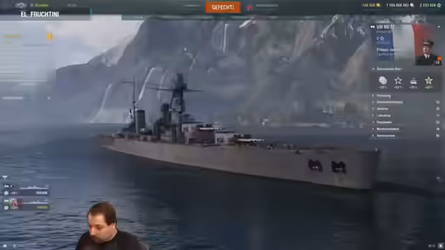 00:32:31Während des Gameplays werden die spezifischen Stärken und Schwächen der experimentellen Schiffe demonstriert. Die Oregon wird gespielt, um ihre Mechanik zu zeigen: Start mit geringerer HP, schnellerer Nachladezeit durch Adrenalinrausch und der spezielle Feuerstoß, der die Reichweite drastisch reduziert. Dies erfordert eine aggressive Spielweise und näheres Herangehen an den Feind, was ein hohes Risiko birgt.