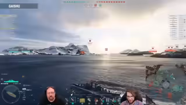 00:34:13Nach einer Abstimmung im Chat entscheidet sich das Duo für Ranked-Spiele auf Stufe 6 bis 7. Da der Streamer selten Ranked spielt, muss er in Bronze beginnen. Für Ranked entscheidet er sich für den japanischen Kreuzer Omono, da dieser Torpedos hat, um gegen die erwartete hohe Anzahl von Schlachtschiffen bestehen zu können. Ein weiterer Streamer wählt Belfast mit Radar und IFHE, um gegnerische Zerstörer jagen zu können.