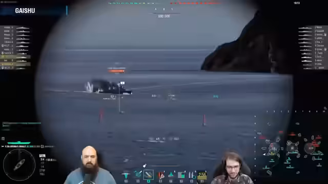 01:23:59Der Streamer stellt das neue Kooperationsschiff I-56-44 (Arona's Whale) vor, eine Version des U-Boots I-56 mit blauen Leuchteffekten und einem pinken Ribbon. Es hat einzigartige Mechaniken: die Torpedos verursachen mehr Schaden, je länger sie fliegen, und die Sonarreichweite ist kurz. Er warnt vor schlechter Tarnung und langsamer Unterwassergeschwindigkeit und empfiehlt vorsichtiges Spiel mit dem Dive-Management.