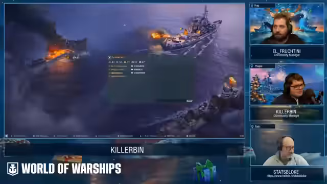 00:21:34Während des Streams wird live gespielt. Die Diskussionen drehen sich um die Wahl von Schiffen, strategische Entscheidungen und das Gameplay im neuen Asymmetric-Battle-Modus. Ein besonderes Highlight ist die Vorstellung eines Weihnachts-Mods von Tetaro, der Schneeball- und Schelltrazer-Animationen ins Spiel bringt. Dieser Mod ist öffentlich nicht verfügbar, und die Streamer betonen, dass die gezeigten Effekte rein visuell sind und den Spielverhaltens nicht beeinflussen.