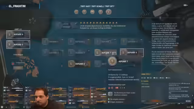 00:29:47Der Streamer diskutiert die Herausforderungen bei der Schiffsauswahl und erwähnt Rabatte für Tech-Tree Schiffe. Es werden Fragen zum Zurücksetzen von Schiffen und Bonuspaketen beantwortet. Die besonderen Eigenschaften europäischer Schlachtschiffe werden angesprochen, deren Ballistik anpassungsbedürftig ist. Es wird über die Special-Mission für einen ukrainischen sprechenden Kapitän gesprochen.