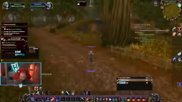 00:01:58Der Stream startet mit dem kontinuierlichen Leveln eines Kriegers im Spiel World of Warcraft. Der Streamer überlegt, ob er erst das aktuelle Gebiet fertig spielen und den Flugpunkt holen soll oder bereits mit Level 15 nach Westfall weiterziehen soll. Er befindet sich im Nachtelfenstartgebiet, welches er nicht besonders mag, und sucht nach der passenden Quest, um in das nächste Gebiet, Loch Modan, zu wechseln.