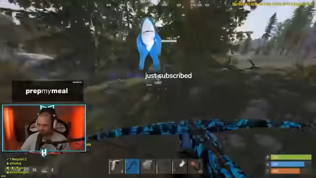 02:17:39Die Spieler verteilen sich, um Ressourcen zu sammeln. Die Taktik im Early Game ist, sich schnell zu treffen, eine Basis zu bauen und dabei wenig zu sterben. Hanky ist mit einem Bogen und Hasi ausgestattet und läuft auf Q10 zu, während er Ressourcen wie Steine, Holz, Pilze und Stoffe sammelt. Es lauern Gefahren wie Bären und Wölfe, die konfrontiert werden müssen. Ein NPC-Scientist wird gesichtet und es wird gewarnt, Fässer nicht zu öffnen.