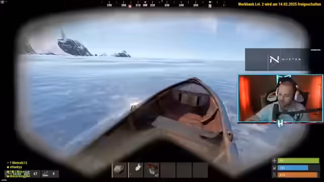 05:09:37Um effizienter looten zu können, entscheidet sich das Team dazu, ein Boot zu bauen, um zum Hafen zu gelangen, wo man ebenfalls eine Blue Card looten kann. Es wird eine Repair Bench benötigt, um das Boot herzustellen, und das Inventar wird aufgeräumt, um Platz zu schaffen. Gleichzeitig werden Eskimo-Skins für Hazard-Anzüge getauscht, um mehr Kälteresistenz zu erhalten, da die Erkundung des Schneegebiets ansteht. Der Streamer lobt das Team für die gute Zusammenarbeit und den schnellen Aufbau der Basis.