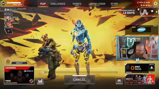 00:18:11Der Streamer ist mit 1 Punkt am Ziel, Master-Rank zu erreichen und braucht dafür 130 Punkte. Er kürzlich 100k für einen Gaze HC abgekauft hat. Sein Mage hat Gaze noch nicht gesehen, während sein Demon Hunter heute Gaze und Velgos Blick bekommen hat, aber nur auf dem Champion Track. Er erwähnt, dass er heute Downfall und Ranked spielen wird und dass Apex der beste Battle Royale ist, den es gibt.