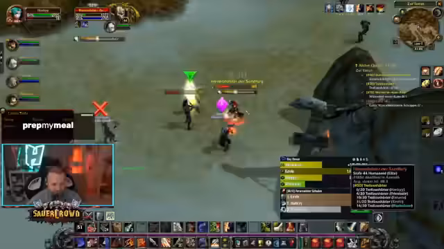 06:33:38Nach technischen Problemen mit der Maus startet der Streamer eine Dungeon-Run in Mauraudon. Er plant, den Doppel-Buff optimal für den Dungeon zu nutzen, da er sonst ausläuft. Die Gruppe muss sich strategisch durch das Gängewerk kämpfen und vorsichtig agieren, um nicht von zu vielen Elites gleichzeitig überwältigt zu werden zu werden. Der Streamer zeigt sich erleichtert, dass die Gruppe erfahrene 'Profi'-Spieler ist, was den Run deutlich erleichtert.